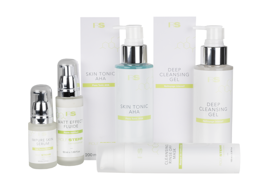 Die IMPURE SKIN Pflegeserie aus dem ROLF STEHR DermoConcept besteht aus dem „Experten-Quartett“ folgender Wirkstoffe: pflanzliche Stammzellen der Alpenkugelblume, Afrikanischer Rindenextrakt, natürliches Saponin aus Oliven und einem Säurederivat aus Rizinusöl.